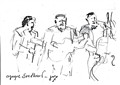 Från samma fest som förra bilden. Sven-Erik, Bumba, Thore Skogman och Bosse Larsson drar en sång tillsammans.