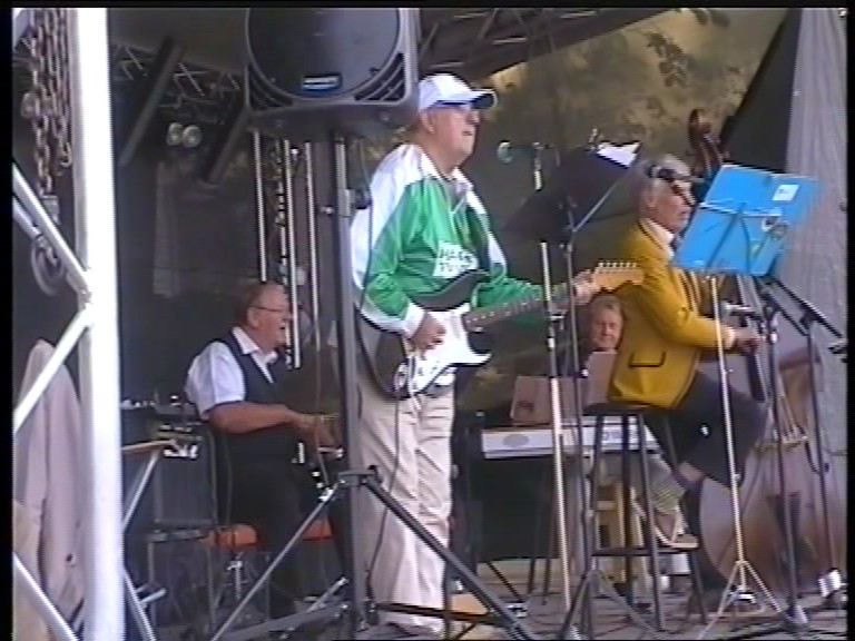 Full fart på Viking Cinderella! Bumba trakterar elbasen vid detta tillfälle, men föredrar helst sin gamla basfiol. Berra drar ett gitarrsolo, ser så ut så koncentrerad som han är....