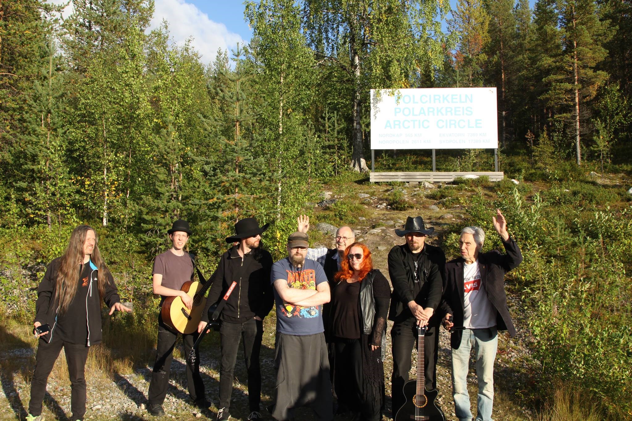 Under Inlandsbanefestivalen stannade vi till för ett gruppfoto vid polcirkeln.